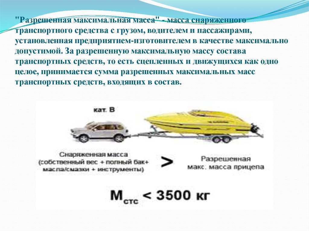 Важно! Желательно не превышать допустимый максимум этого показателя, дабы избежать деформации кузова и проблем с подвеской. В ПДД также говорится, что подразрешенной максимальной массойавтопоезда имеют в виду сумму максимально допустимых масс всех транспортных средств, которые составляют поезд