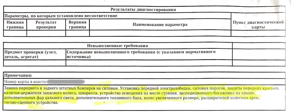 На обратной стороне диагностической карты будет прописано, какие изменения внесены в конструкцию авто.