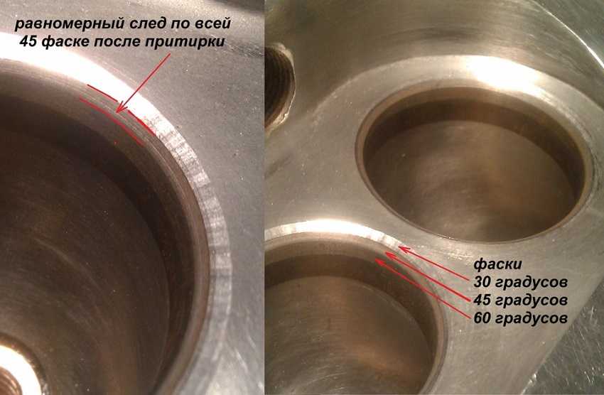 Важно, чтобы не было никаких «пробелов» по всему её диаметру. Некачественная фаска, то есть, фактически, нарушение герметичности при рабочем цикле, ведёт к потере мощности, задымлениям и прочим неприятным последствиям для двигателя и автомобиля