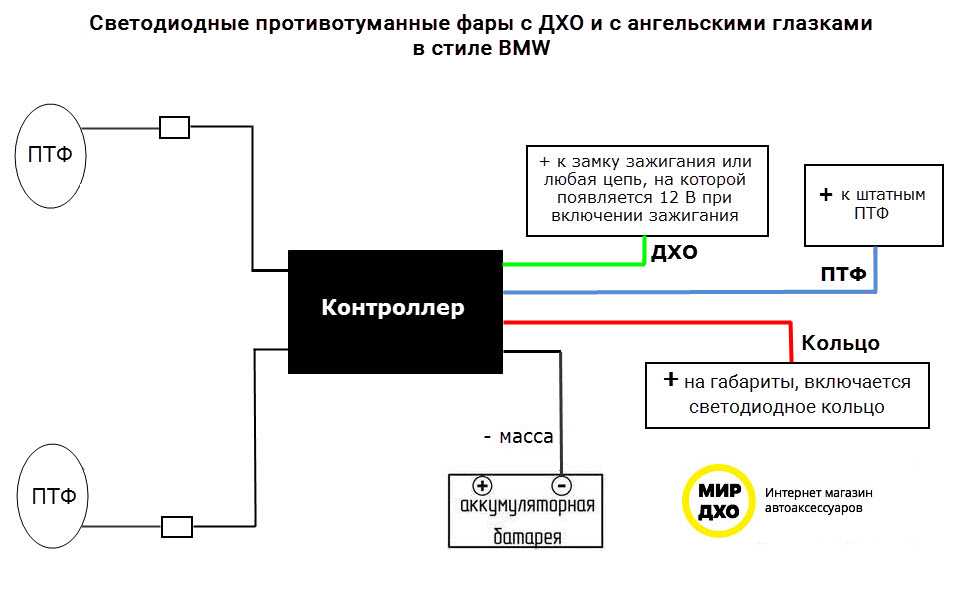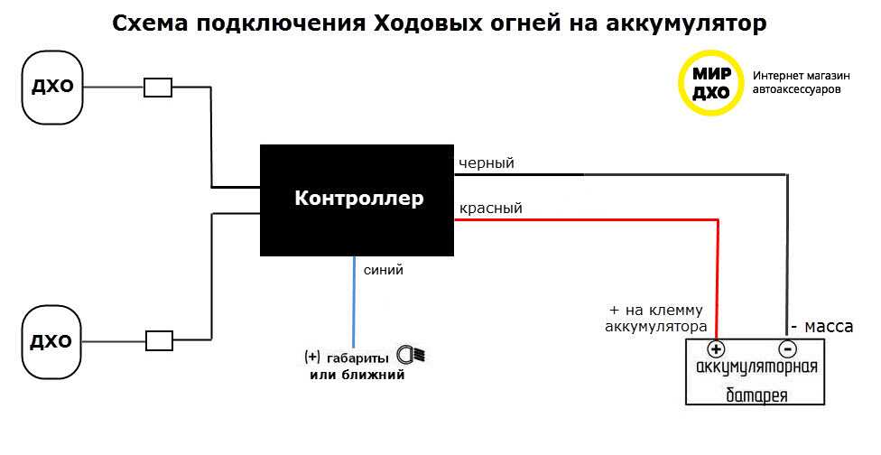 . + напрямую на аккумуляторную батарею. 1 синий провод на + габариты\ближний свет — ночная функцию отключения.