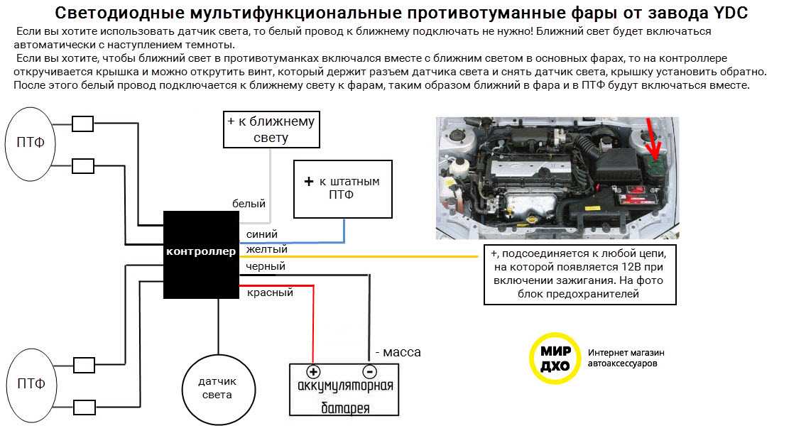 9. Данные ДХО от фирмы YDC, это указано в названии или сказано в видео ролике. Контроллер с двумя проводами + (>13В) и —