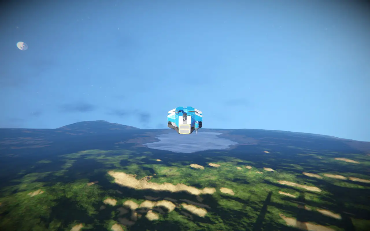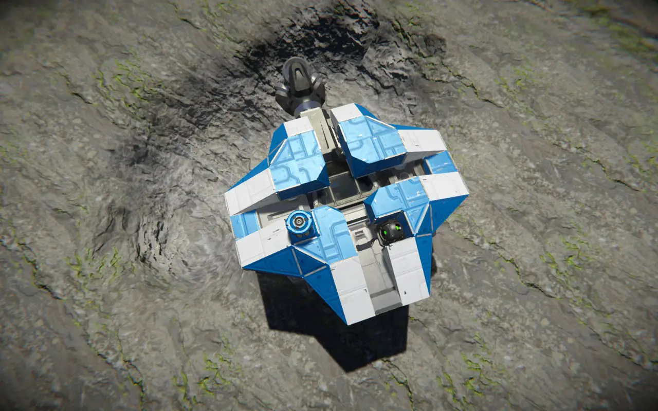 Активируйте все двигатели и плавно поднимитесь над поверхностью планеты, нажав кнопку «вперед». Летите на умеренной скорости под углом 25-30 градусов к гравитации к ближайшей каменистой поверхности и благополучно приземлите на нее капсулу. Затем вернитесь к предыдущей процедуре.
