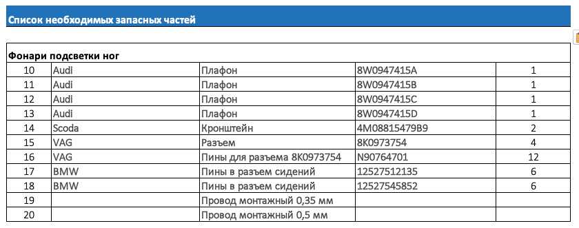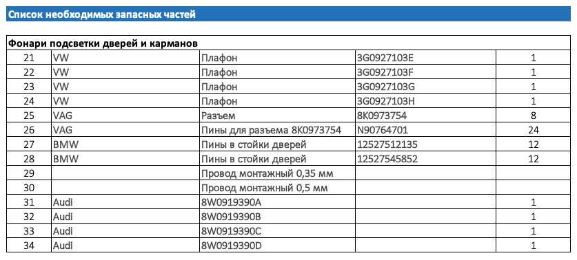 Запчасти для проводки, необходимой для установки RGB диодов в двери, ноги центральную консоль:
