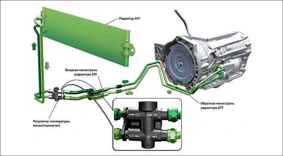 Самым эффективным способом является аппаратная замена. Это вытеснение старой смазки путем прокачивания по системе новой под давлением от специальной станции. Схема замены масла в АКПП при помощи современного оборудования выглядит так: