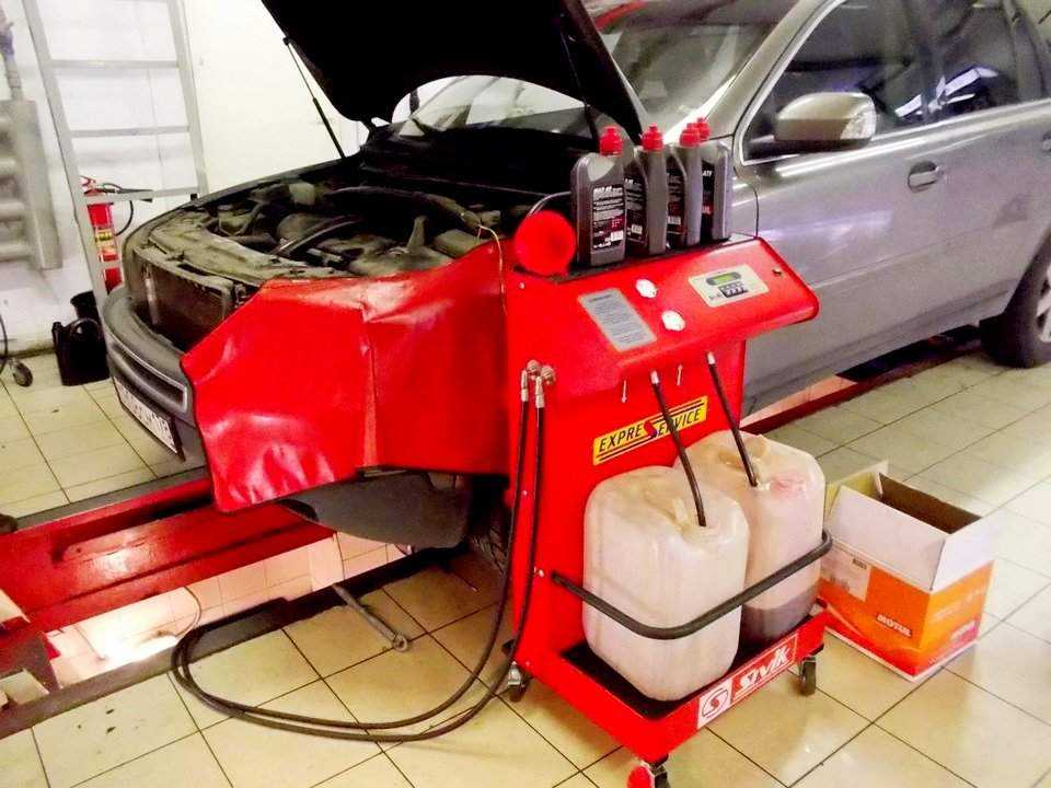 Способ хорош тем, что обеспечивает 100% замену путем вымещения. Промывается гидротрансформатор и гидроблок. Качество обслуживания видно сразу по цвету выливающейся смазки. Работа трансмиссии улучшается: становится тише, резвее переключение, повышается плавность хода. Водители отмечают сокращение расхода топлива. Но есть и минусы: понадобится большой объем 11–12 литров трансмиссионной жидкости, половина из которой тратится просто на промывку. Аппарат для замены дорогой и имеется не в каждом СТО, не говоря уже о гаражных мастерских. В некоторых недобросовестных автосервисах могут взять 12 л техжидкости, но залить только 6 л, присвоив остальное себе. Иногда забывают поставить фильтр или заменить прокладку.