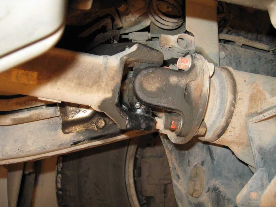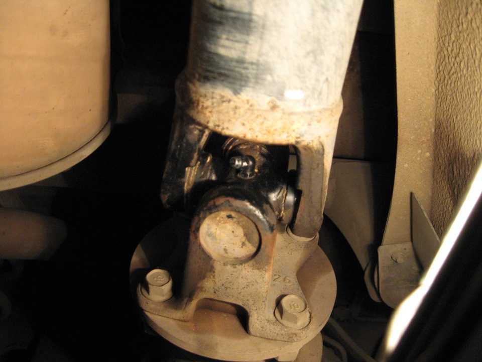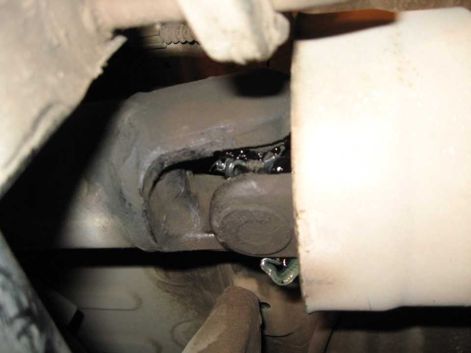 Чтобы до них добраться снял задний лист защиты и приопустил передний.Чтобы не разбирать узел для смазки придумали пресс-масленки: корпус с конической резьбой, в нем клапан (подпружиненный шарик).Начал я с задней, как самой удобной. На заднем валу масленки Г-образной формы располагаются по середине крестовин. Масленка нашлась под слоем грязи, причем в удачном положении для шприцевания.
