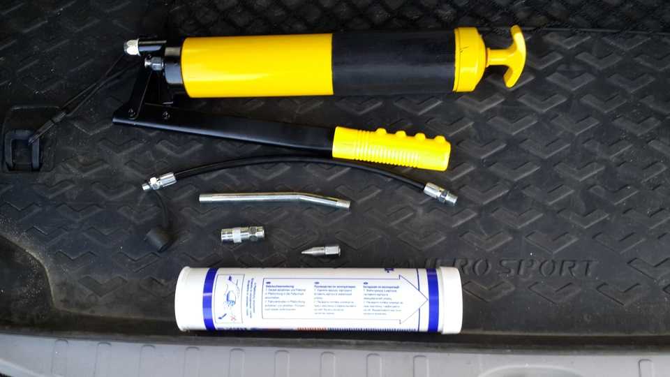 Далее, приготовьте необходимые инструменты: шприц, иглу для заправки, и контейнер смазки. Убедитесь, что контейнер смазки открыт и готов к использованию.