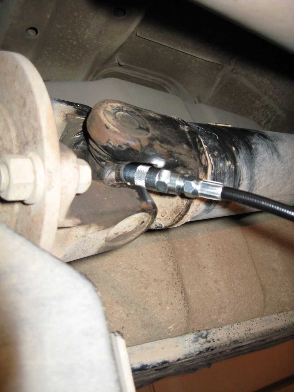 Долго сомневался прежде, чем решил опубликовать эту запись. Да ладно, от насмешек знатоков не помру, и камни виртуальные – не больно :), зато кто-нибудь еще станет сам делать эту простую, но полезную процедуру.То, что в нашем автомобиле есть карданные передачи и крестовины я знал. То, что их надо смазывать – тоже (по сервисной книжке на каждом ТО). Даже лет 40 с лишним назад видел у отца в гараже шприц, однако рычажно-плунжерный (как звучит!). Полистав БЖ товарищей DiskMan , 777crash , SY25 (им отдельное спасибо) окончательно созрел. Итак…Инструмент. Витрина со шприцами в автомагазине поразила их количеством и разнообразием. Изумленный я переместился в отдел ГСМ, где сходу приобрел подходящую по названию смазку (думается не дешевую, примерно 350р.). Дальше было проще, т.к. смазка оказалась в тубе, то купил соответственно и шприц для туб (с жабой удалось договориться примерно на 650р.). Кстати, можно иметь несколько туб с разной смазкой и использовать по мере необходимости, переставляя.