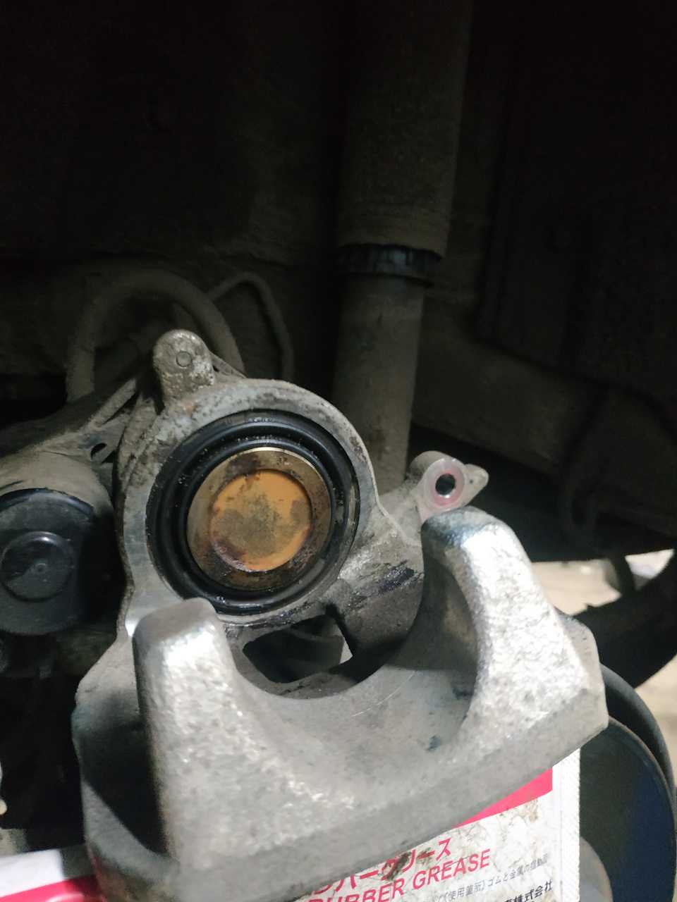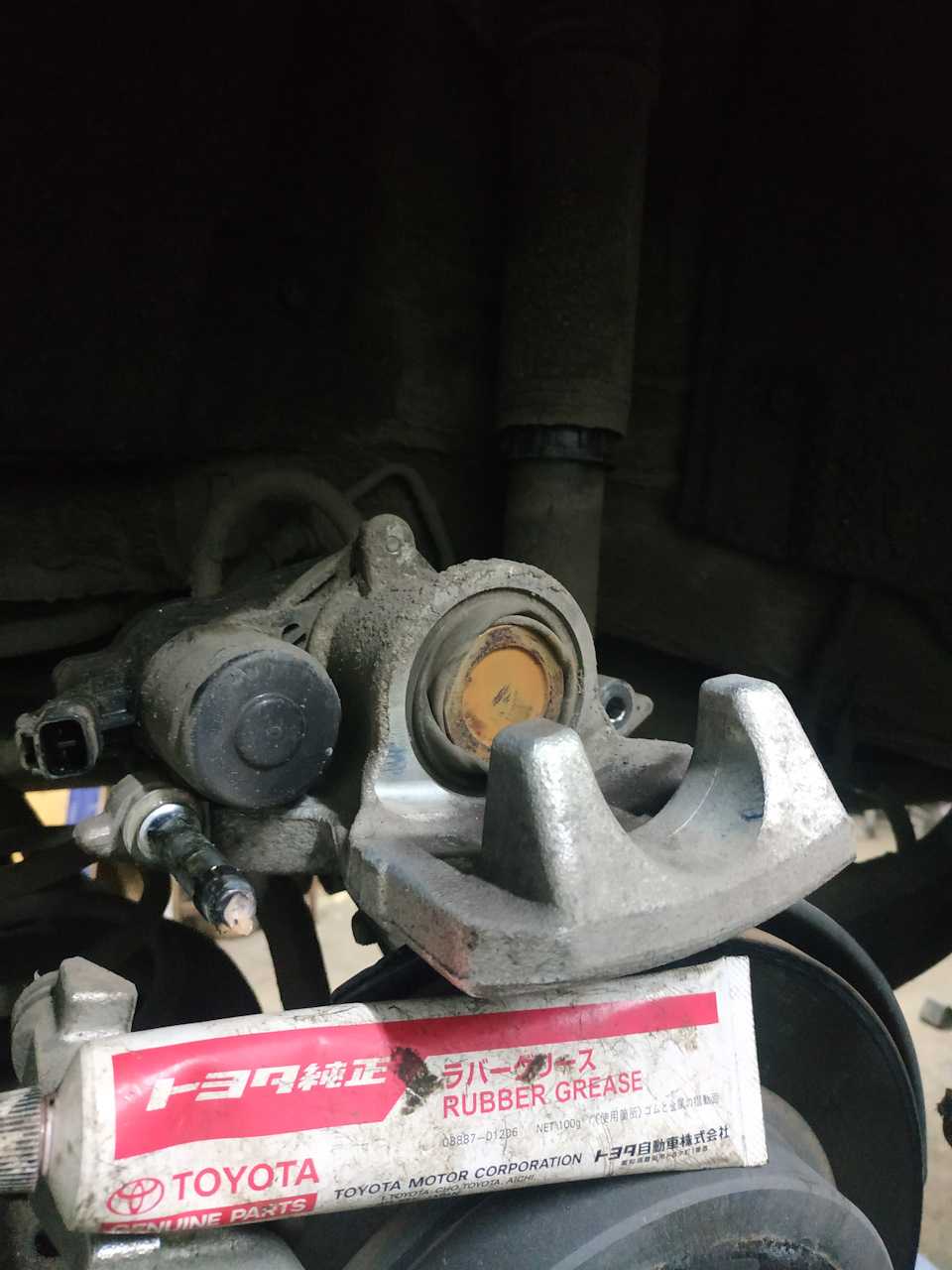 Чик. Поршень сам утопился почти полностью. Пыльники поршней даже на малых пробегах прилипают наглухо к поршню, тут необходим Фен-шуй тойоты. Делаем обряд помазания смазкой на основе литиевого мыла. Можно той же 08888-01206.
