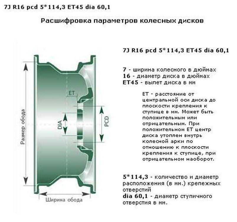 Кроме того, на дисках могут быть указаны такие данные как вылет (ET) и ступица (DIA). Вылет обозначает расстояние от средней линии диска до плоскости крепежа, а ступица — диаметр центрального отверстия диска. Эти параметры также очень важны, так как неправильно подобранный вылет или ступица могут привести к проблемам с балансировкой и установкой диска на автомобиль.