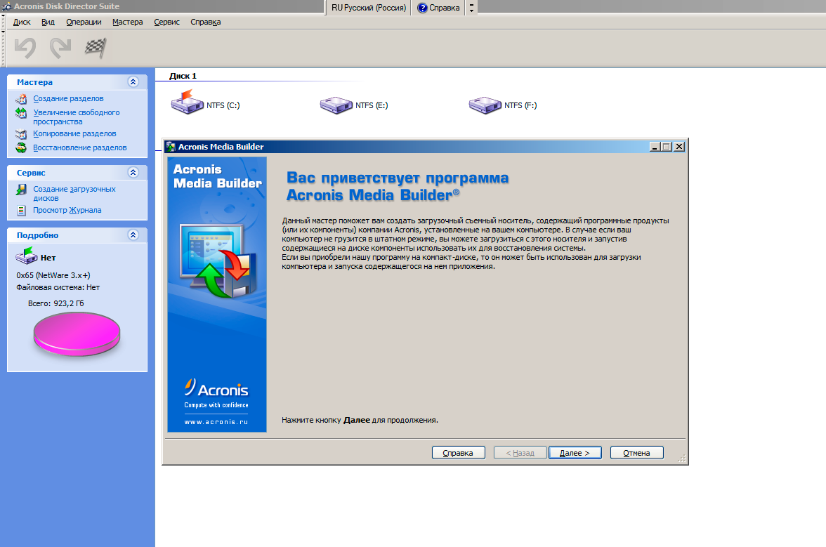 Поэтому после установки ОС, основных программ очень важно создать копию раздела, пока она еще не повреждена различными вирусными программами и патчами обновления