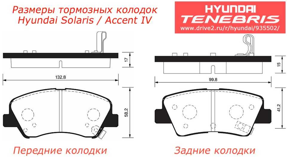 Линейные размеры колодок для Hyundai Solaris/Accent IV