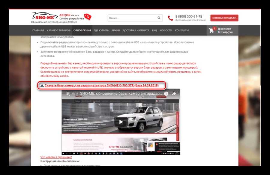 Процесс обновления прошивки практически идентичен обновлениям радара SHO-ME: