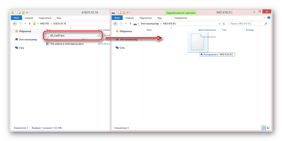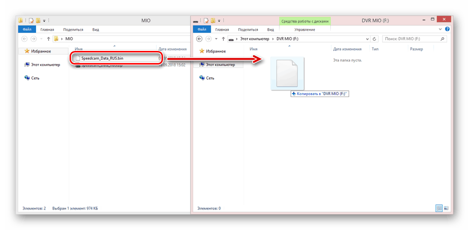 Есть 2 способа переписать файл на флешку. Я использовал 1-ый1 способ — Подключаем регистратор проводом к ПК. Открываем носитель через «Мой компьютер» и «бросаем» на него файл.2 способ — Воспользоваться картридером. И так же «бросить» на флешку файл.