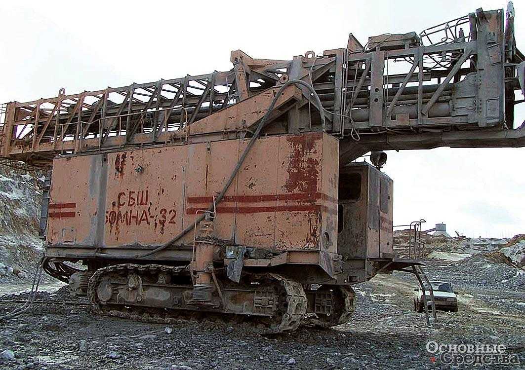 Многие годы на карьерах успешно эксплуатируются станки модели СБУ-100Г-35 Кыштымского машзавода. Эта модель оснащена гусеничным ходом и состоит из следующих узлов: рабочий орган, шарнирно закрепленный в передней части станка, включающий в себя пневмоцилиндр подачи, оснащенный направляющими, по которым перемещается вращатель. Механизм подачи пневмопоршневой, включает неподвижный цилиндр и подвижной шток, связанный с плитой вращателя.