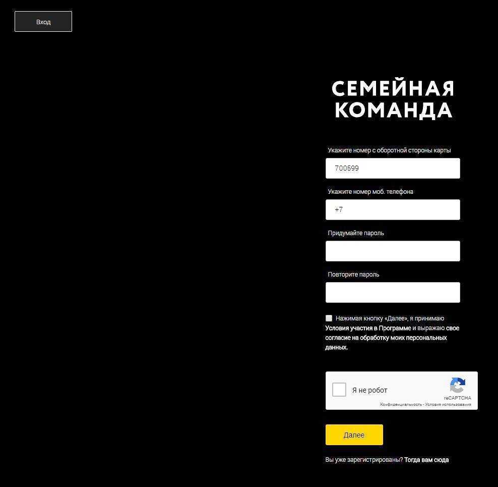 Чтобы воспользоваться Личным кабинетом карты «Роснефть» «Семейная команда» требуется регистрация на https://komandacard.ru/. Это же действие позволяет активировать ID-пользователя, если ранее вы не выполняли данную процедуру. Используйте инструкцию ниже, чтобы создать ЛК: