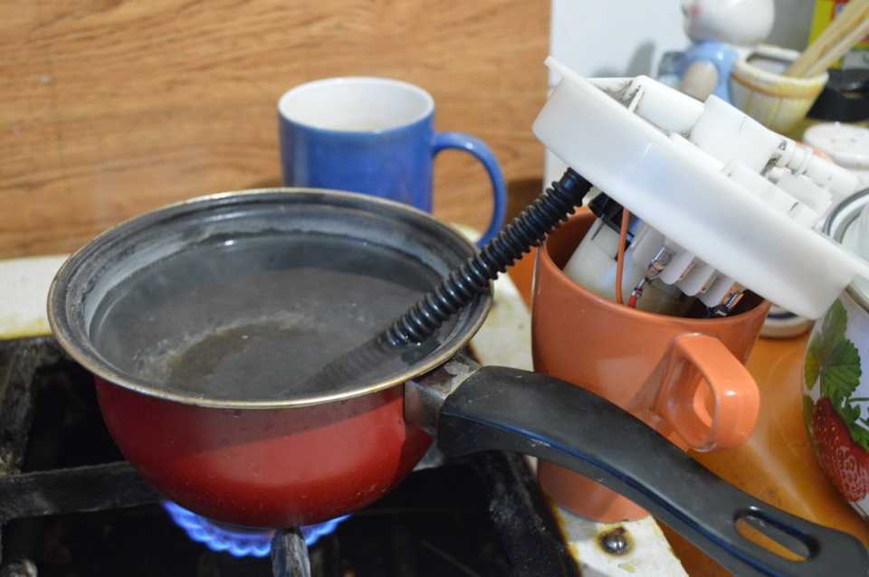 4) Чтобы установить трубку, вам придется ее нагреть. Самый простой способ – 30 мин. «варить» ее в кипятке.