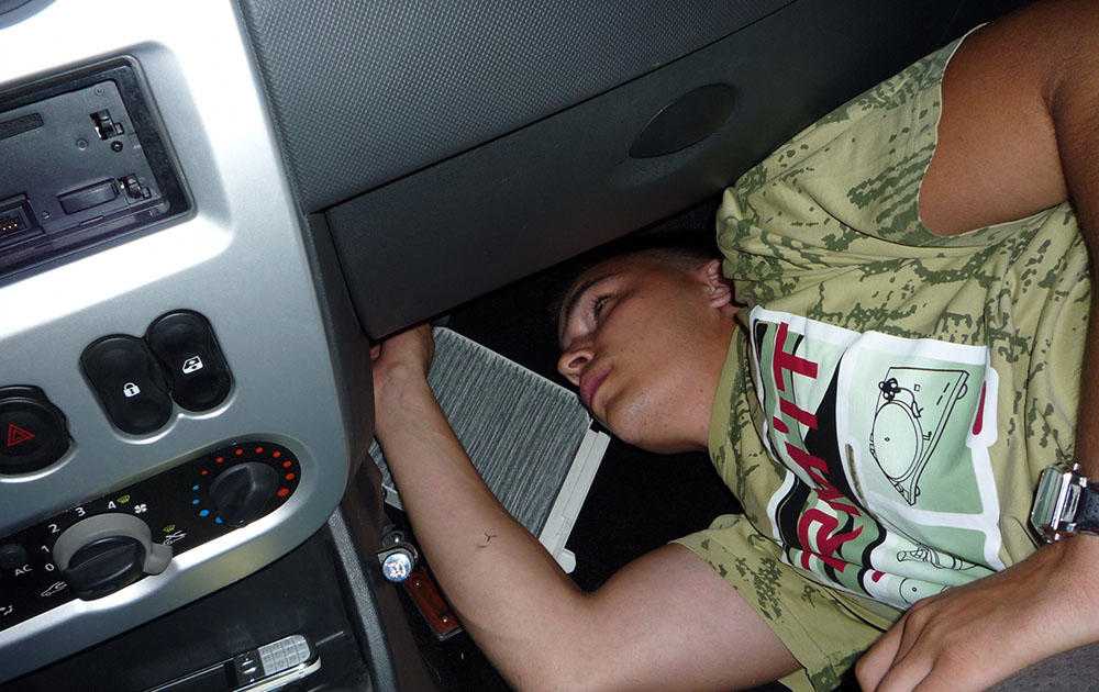 у ног пассажира сзади вещевого ящичка. Для смены фильтра не требуется ничего, только новое устройство.