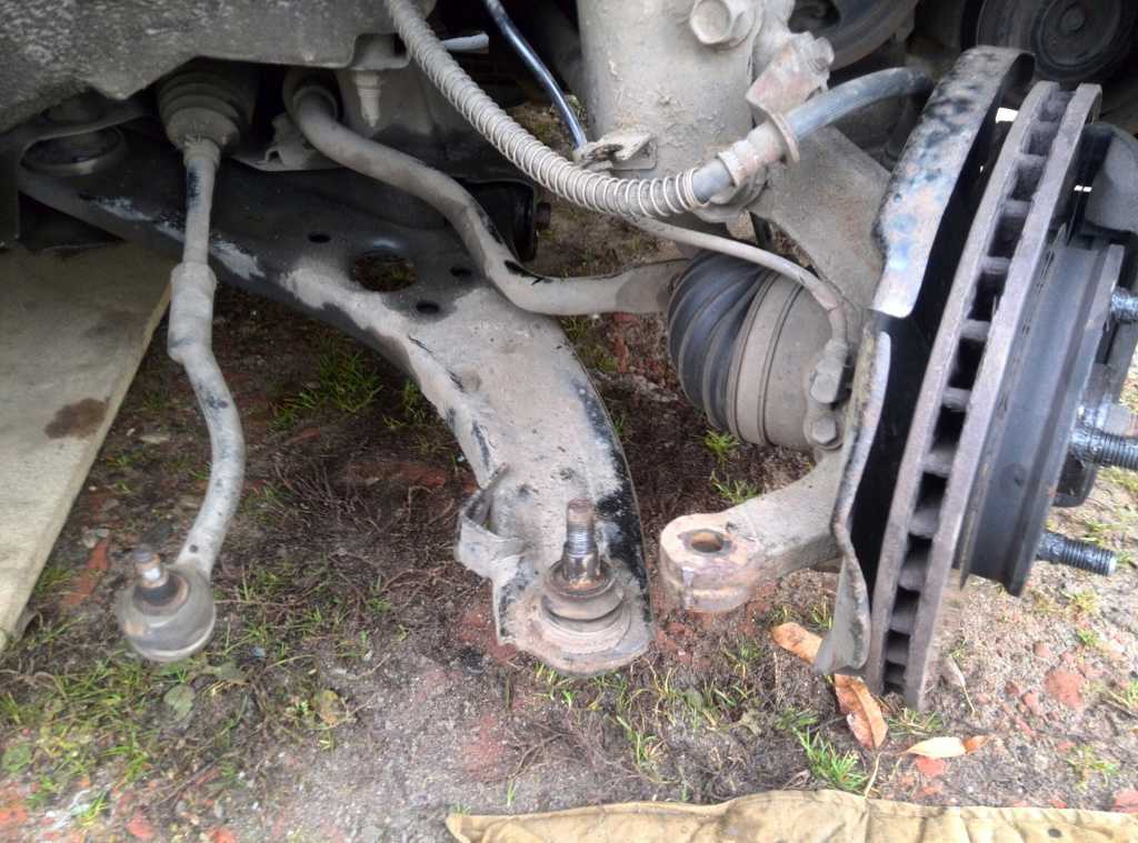- Затем, отвинчивается шаровая опора, и цапфа наружного ШРУСа вынимается из шлицевого соединения со ступицей.