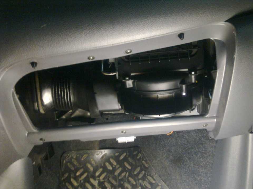 Далее присоединяется гофра и возвращается на прежнее место бардачок.