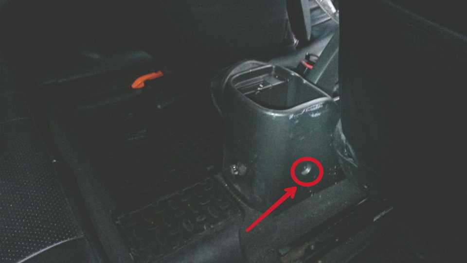 Открутите и извлеките два крепежных болта пепельницы к облицовке тоннеля пола.