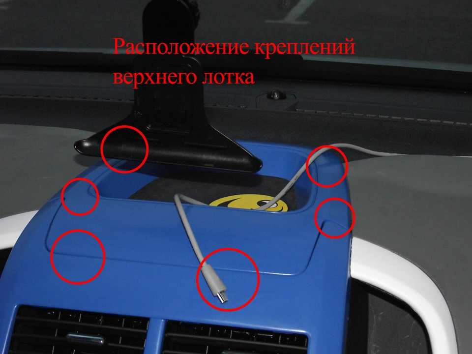 Можно подкладывать что то типа пластиковых карточек в образовавшиеся щели. Стараемся сдернуть нижнюю часть, я начинал с правой стороны, потом аккуратно продвигаемся вверх. Самое трудное это начать, не советую сильно упираться на распор какими либо предметами — пластик очень мягкий, проще создав достаточную щель стараться тянуть руками в месте крепления.Есть еще один вариант (сам я его не пробовал, но где то читал про него) берется что то типа спицы с загнутым концом и вставляется в дырку для карточек, цепляется за консоль и тянется на себя, тем самым низ консоли и отстегивается.Теперь нужно снять верхний лоток, это довольно просто -тянем вверх и он соскакивает) Фото расположения креплений лотка: