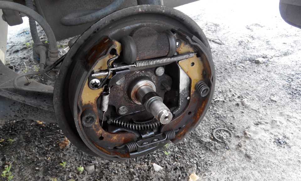 Если не поддается снятию — обрызгайте жидкостью «вэдэшкой». Подождите несколько минут и гайка плавно открутиться. Потом демонтируем тормозной барабан и прикрепляем съемное приспособление. Теперь самый ответственный момент — извлечение подшипника из ступицы.