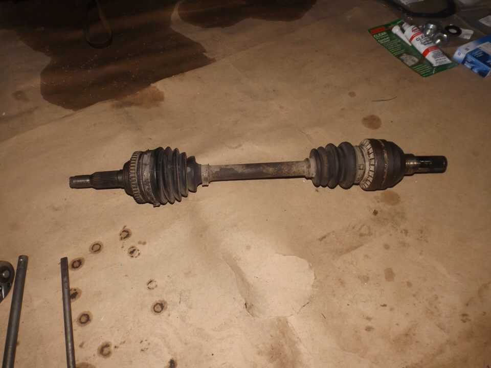 Теперь извлекаем шрус из ступицы. Гайка, которая фиксирует шрус (на 32 мм.), уже должна быть полностью откручена. Отводим шаровую вниз, а ступицу отталкиваем наружу автомобиля и извлекаем шрус. При этом можете его отгибать в сторону. Аналогично поступаем с другой стороной.