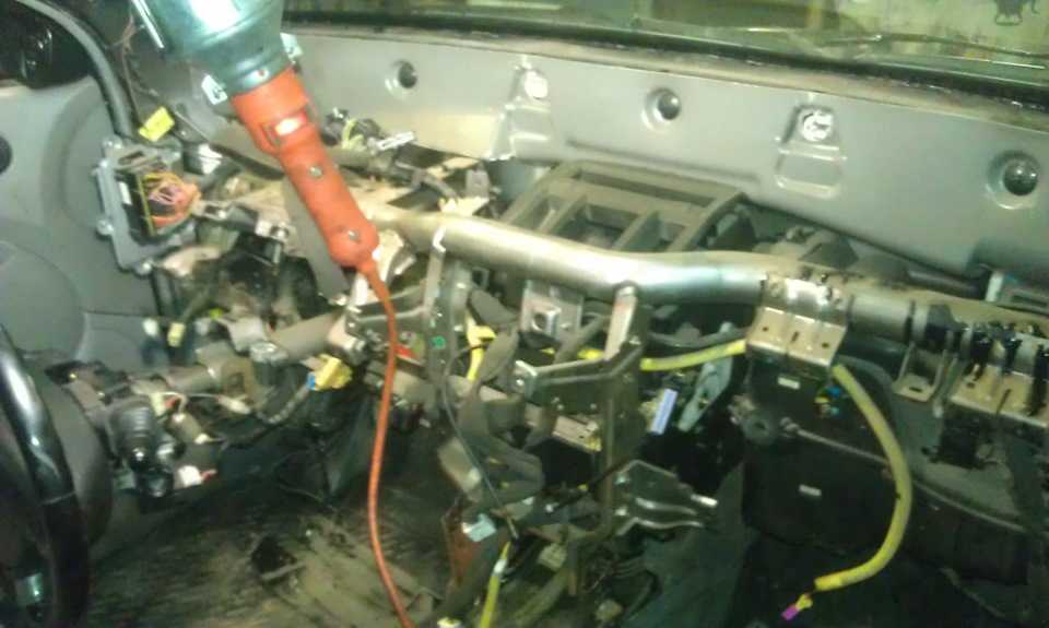 - теперь у нас есть почти полноценный доступ к штатному отопителю. Чтобы добраться до печки, необходимо открутить саморезы крепления кожуха центрального воздуховода;