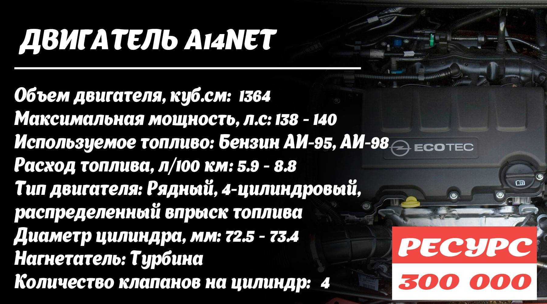 - A14NET – 140-сильный 1.4-литровый мотор, нашедший свое применение в рестайлинговой версии авто в кузове седан;