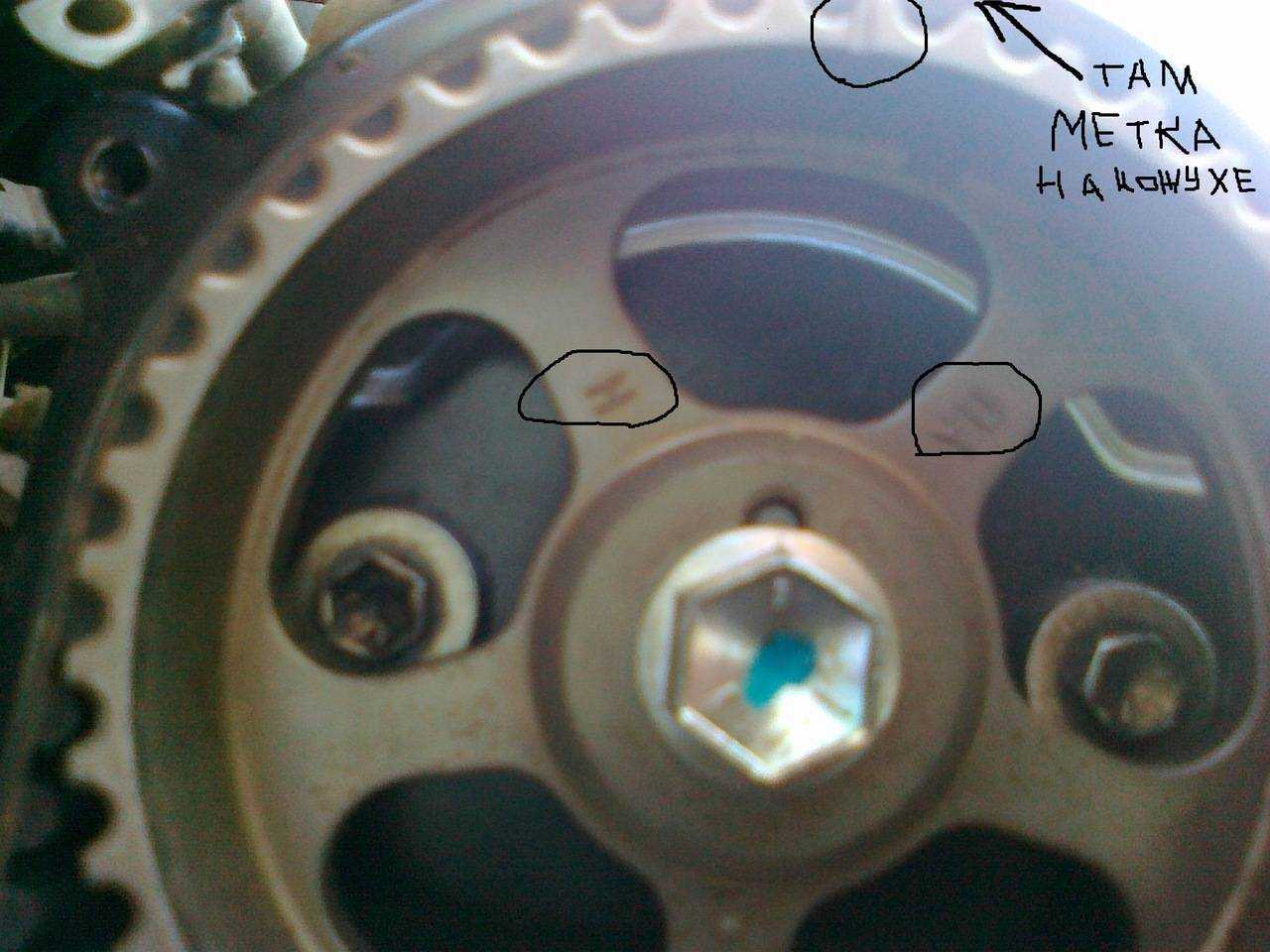 Chevrolet Aveo Sedan Светодиодам “да!” › Бортжурнал › замена ремня ГРМ на двигателе B12S1 (1. 2 л 8 кл.) распредвала.(кстати на ней две метки) так вот, при установке ремня, нужно провести воображаемую линию от шестерни распредвала.