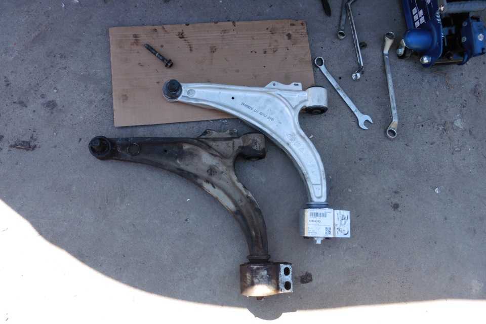 — левый рычаг в сборе GM 13334022— домкрат;— 2 ключа на 15;— 2 ключа на 18;— WD-40;— перчатки;— монтажка.