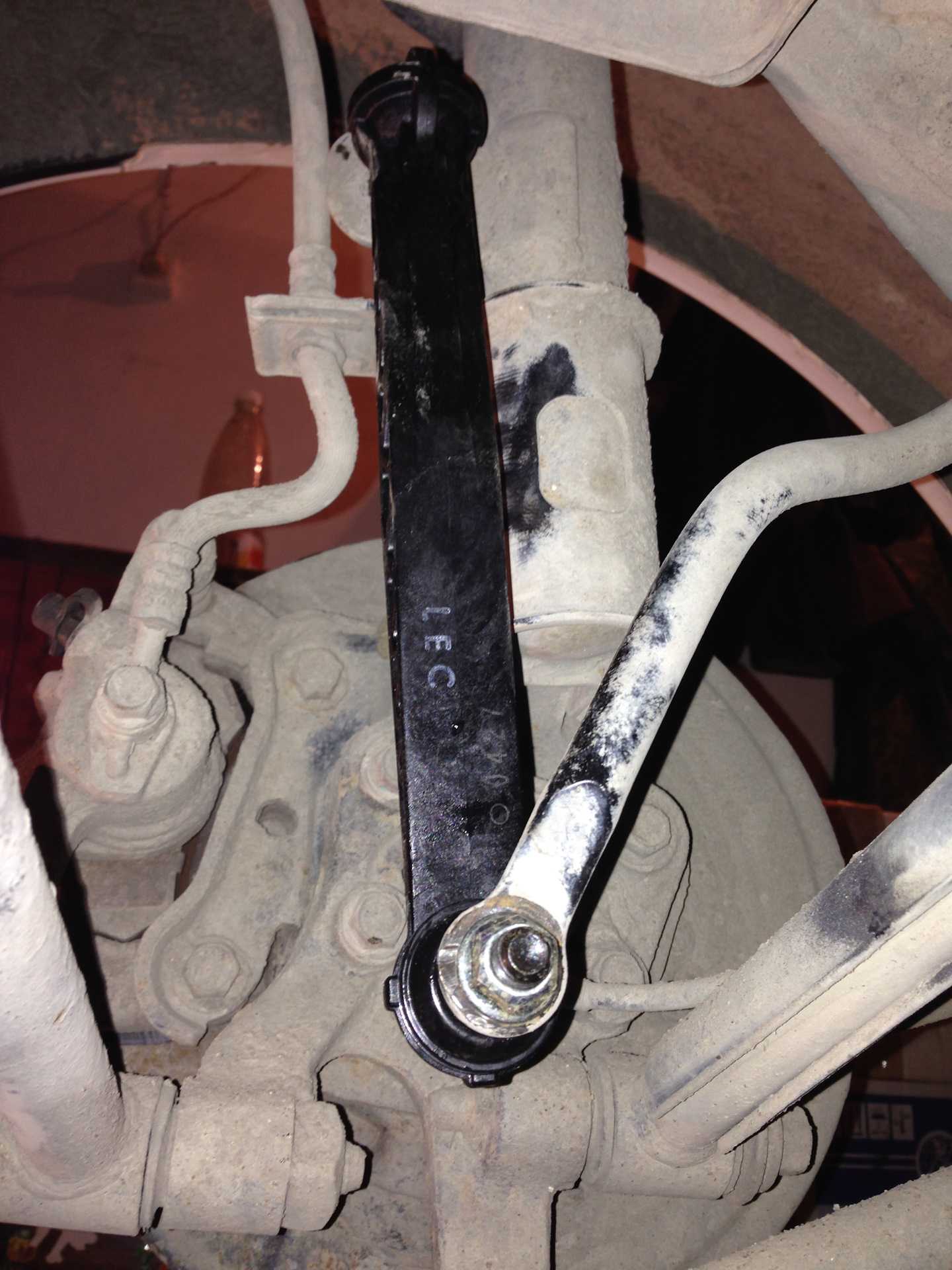 Домкрат в данном случае не помощник, так как необходимо, чтобы автомобиль стоял на всех колёсах. Это обеспечит отсутствие напряжения на стабилизаторе.