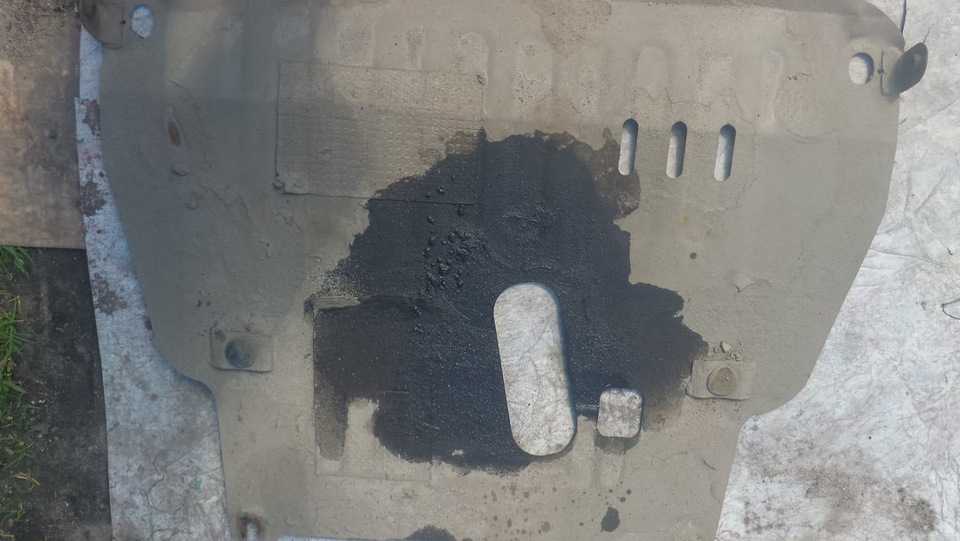- Спускаемся в яму и демонтируем защиту масляного поддона картера двигателя Шевроле Авео.