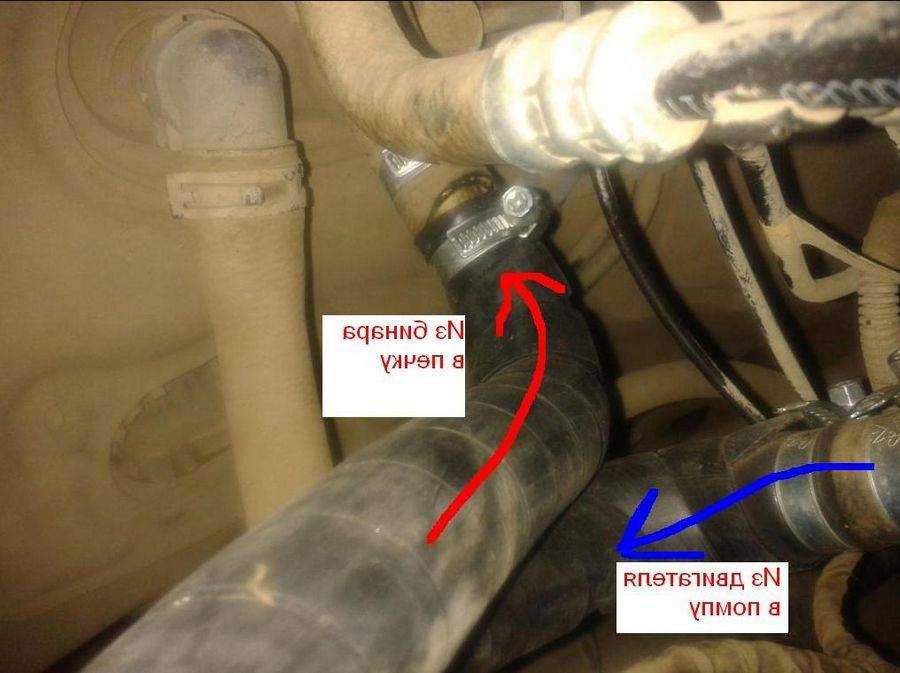 Быстро снять тонкий патрубок и на его место одеть шланг, по которому будет производиться слив охлаждающей жидкости. Также желательно запустить силовую установку и дать ей поработать 15-25 секунд.