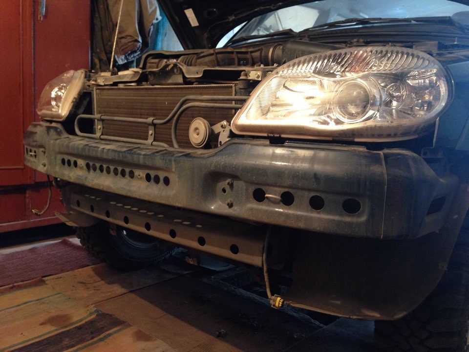 В этом случае вам нужно сделать новый бампер и прикрепить его той стороной, где у вас будут крепления к лебедке. Лифтинг Шевроле Нивы своими руками. Так и держится лучше и прослужит дольше. Далее требуется изготовление боковых накладок После подготовки всех элементов можно произвести первичную сборку, установив усилители и накладки на лонжероны.