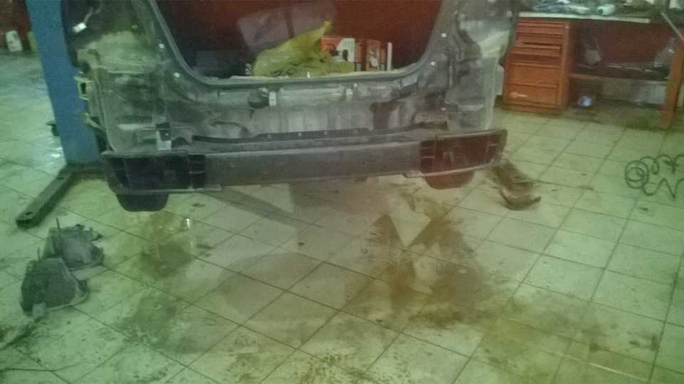 -залазим под авто и выкручиваем по две гайки с каждой стороны, которые крепят усилитель бампера к задней панели. Можно снять без усилителя, для этого снимаем задние фонари и вытаскиваем по кругу пистоны. Правильно снимать с усилителем.-с помощником аккуратно стаскиваем бампер назад (смотрим, чтобы не порвать провода).-разъединяем разъемы электрооборудования (если есть).