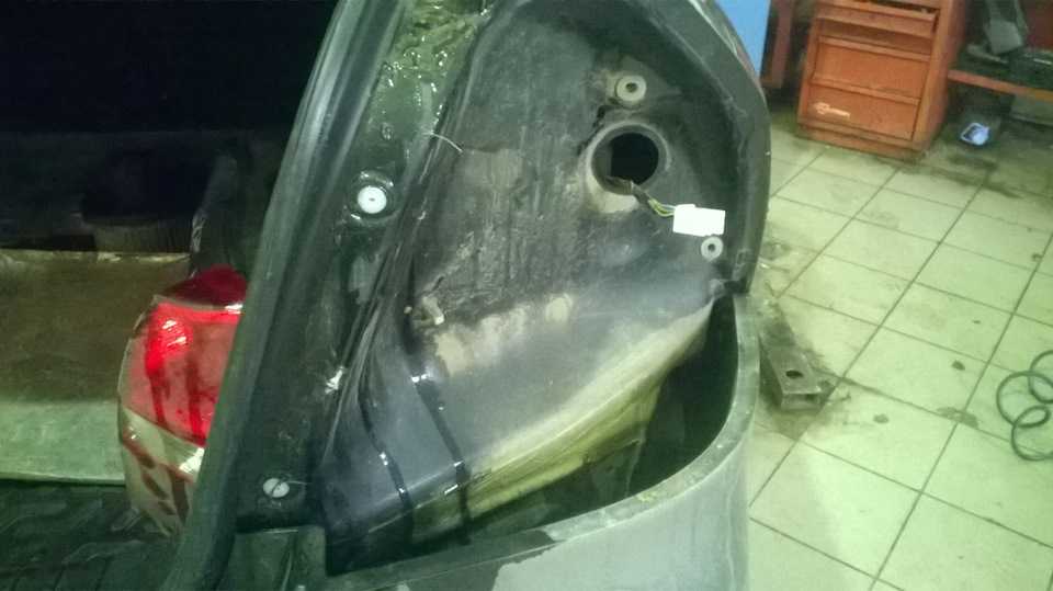 - Откручиваются крепежные винты и наружная отделка, что расположена под задними фонарями;