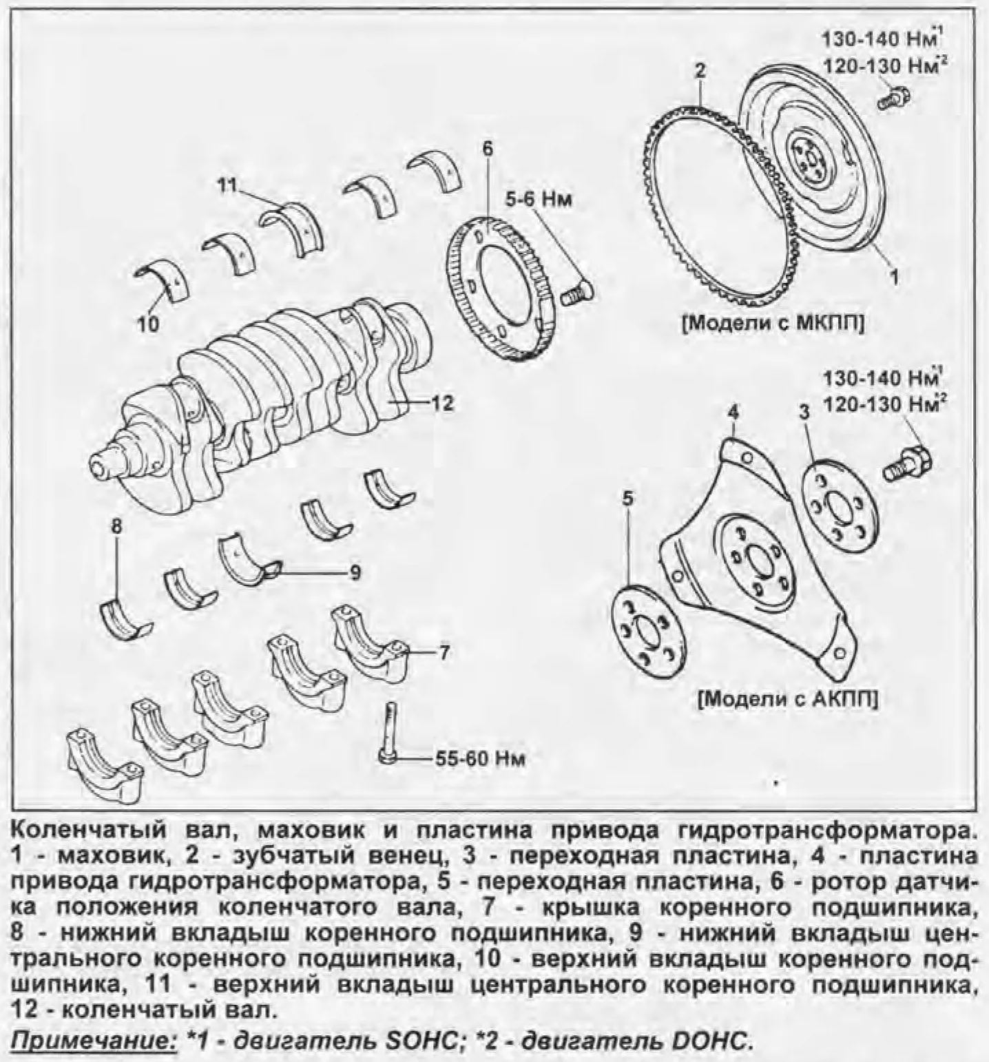 | Болт крепления шкива коленчатого вала | М12х1,25 | 99,0–110,0 (9,90–11,0) |