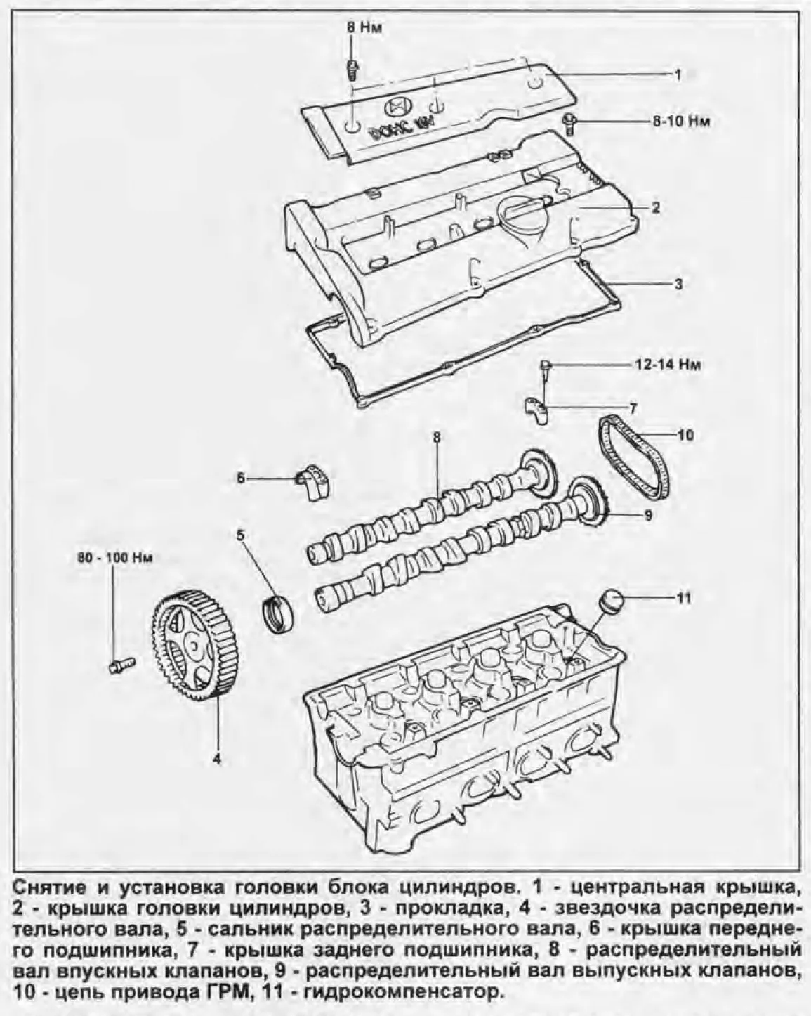 | Болт крепления крышки головки блока цилиндров | 8-10 |