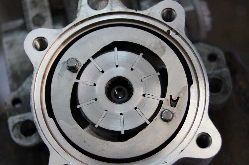 Насос имеет две основные части — всасывающий ротор и нагнетательный ротор. Всасывающий ротор притягивает гидравлическую жидкость из резервуара и перекачивает ее в гидропроводы. Нагнетательный ротор создает высокое давление, необходимое для усиления управляемости рулевого колеса.