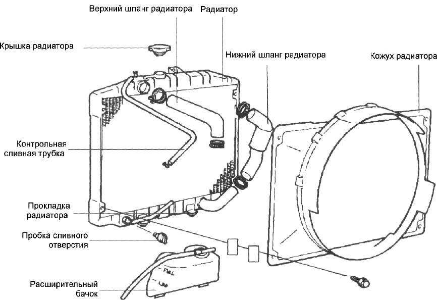Отключите аккумулятор и сливайте охлаждающую жидкость из системы охлаждения, освободив шланги и дренажный кран.