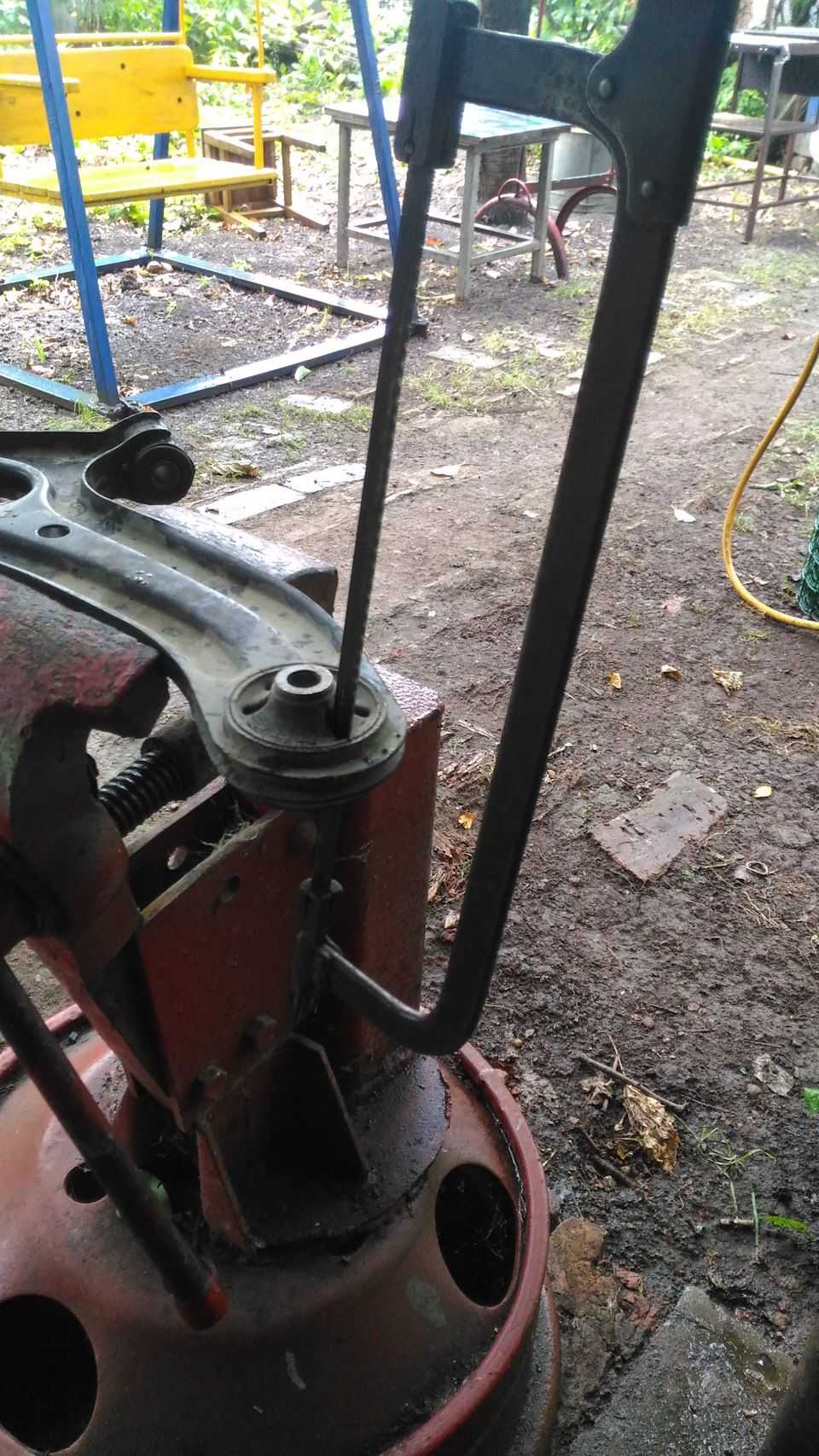 - Используя пресс, выдавите старый сайлентблок.