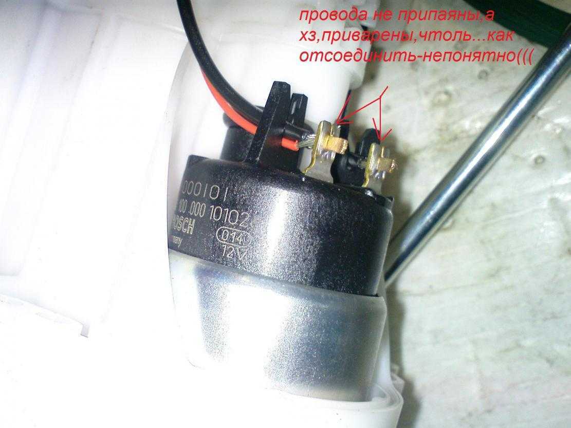 - Отсоединяем наконечник массового кабеля и снимаем трубку, через которую сливается топливо.