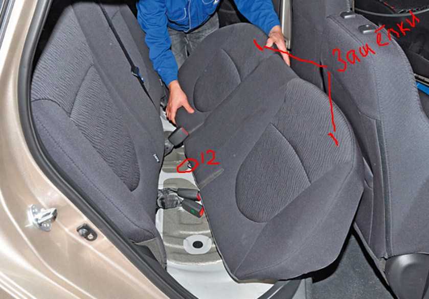 - Снимите задний диван, потянув его на себя. Предварительно затяните 12 гаек между спинкой и спинкой сиденья с помощью гаечного ключа.