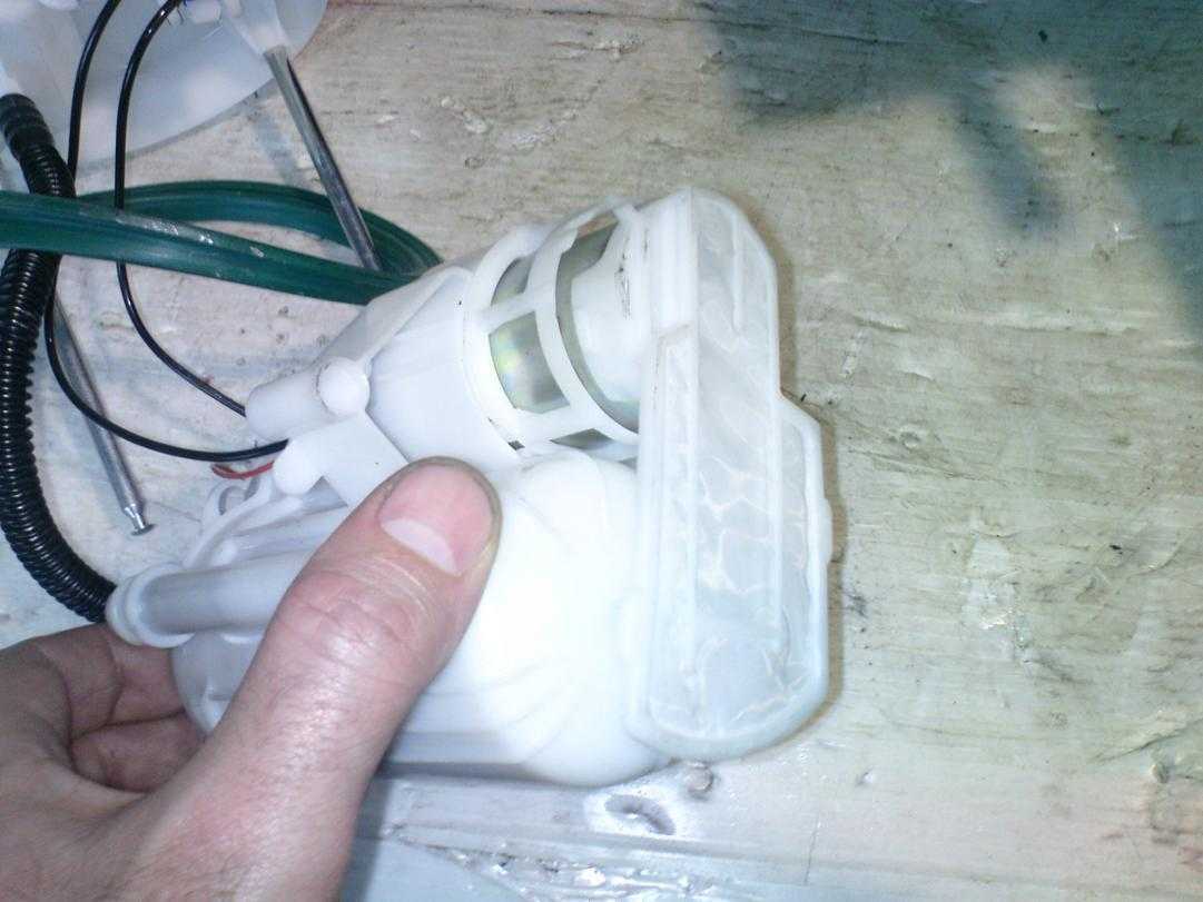 Заменяем фильтр грубой очистки (сеточку на входе в бензонасос), заменяем фильтр тонкой очистки — пластиковую емкость.