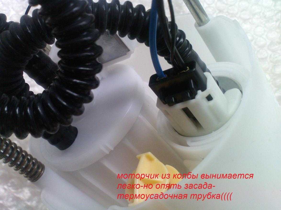 - В корпусе фильтра вынуть топливный насос с трубкой из гнезда.