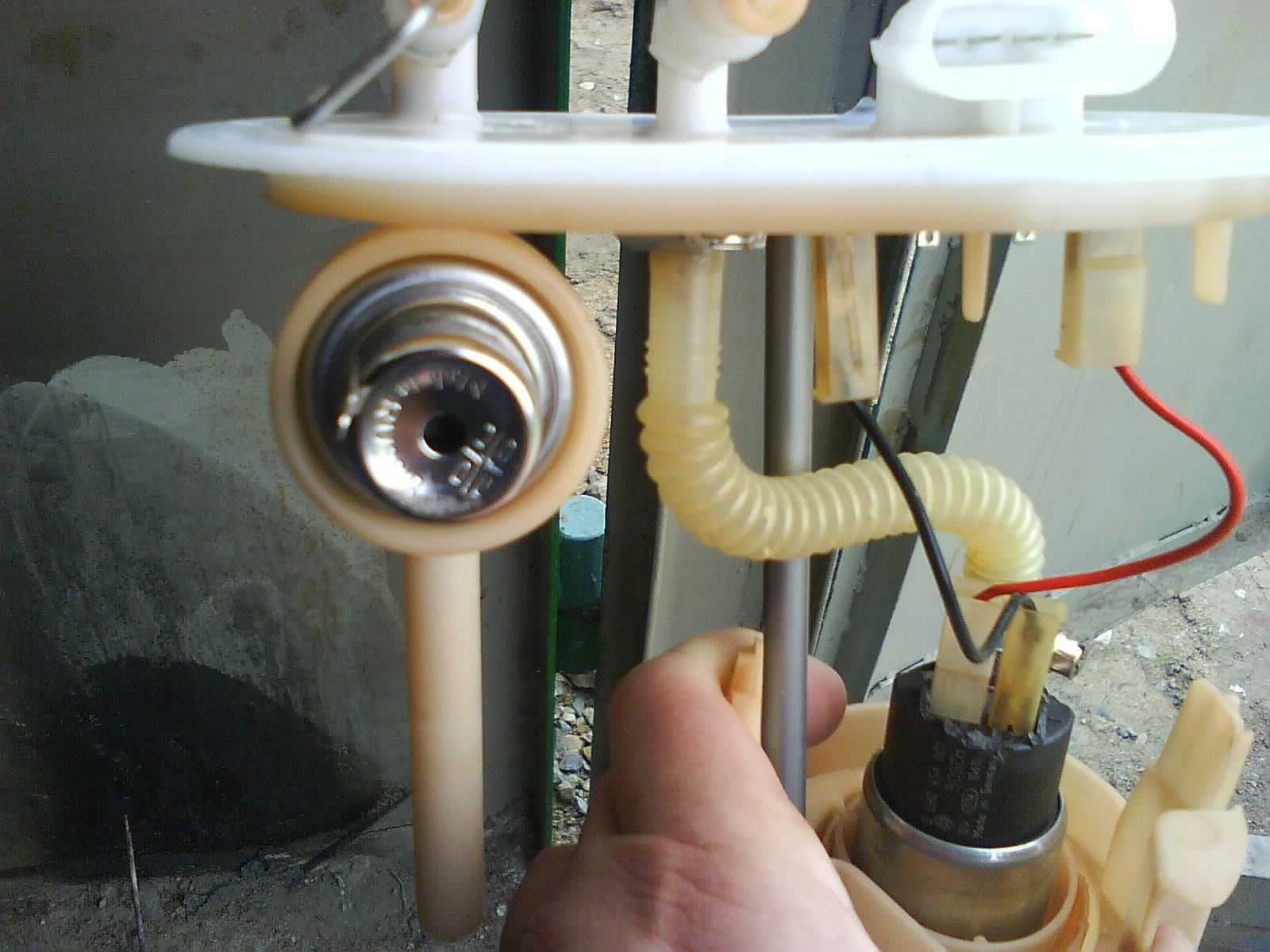 - Извлекаем из гнезда внутри оболочки фильтра топливную помпу с трубой.