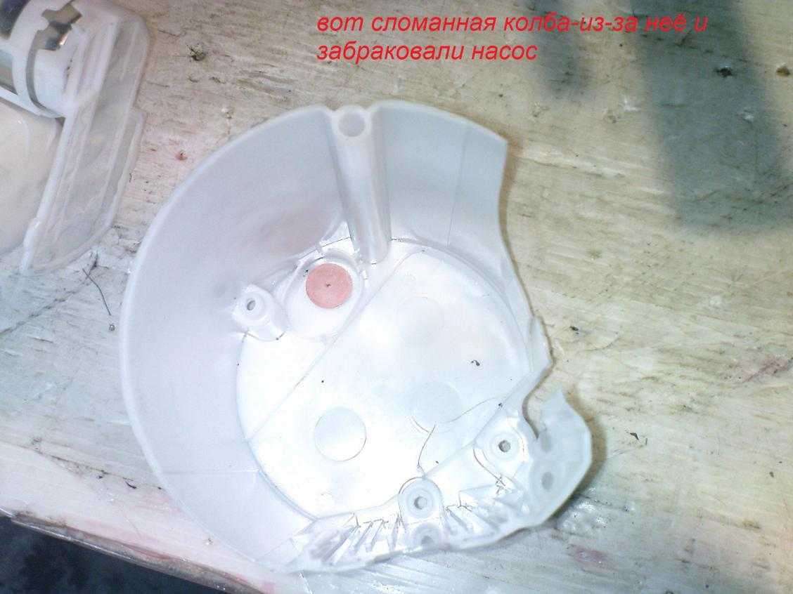 Самое трудное при разборке насоса III- варианта — вытащить «начинку» из колбы (3 штырька в колбе,на них насажена «начинка») я, признаюсь, сломал при этом все 3 штырька. А это значит-колба в утиль(хотя она уже до меня была сломана кем-то так-что не обидно), а второе-«приваренные» провода к контактам (можно тупо откусить и припаять обычно, оловом)