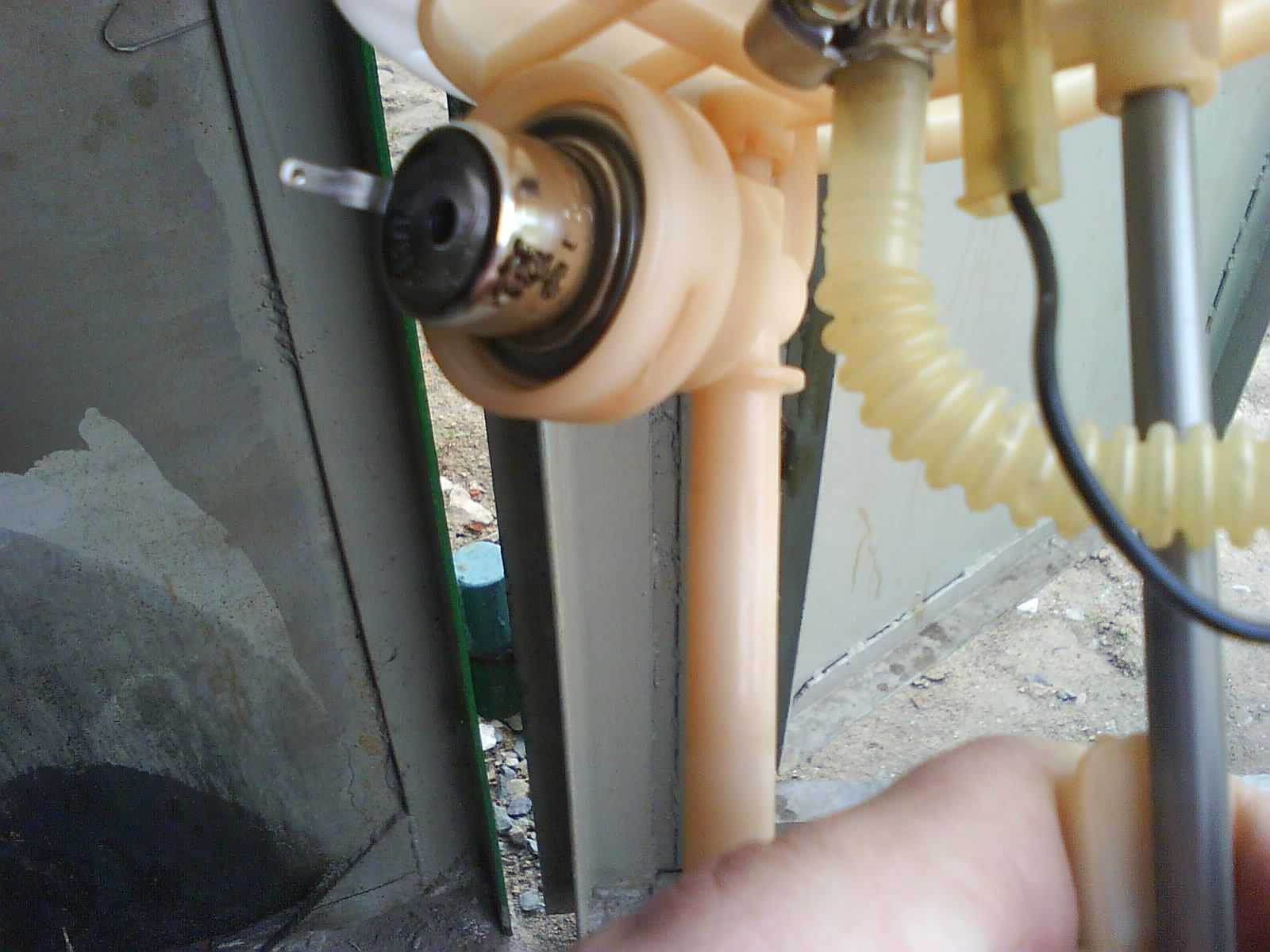 - Снимаем со штуцера крышки наконечник. Для этого нажимаем на фиксаторы, располагающиеся на трубке, подающей бензин.